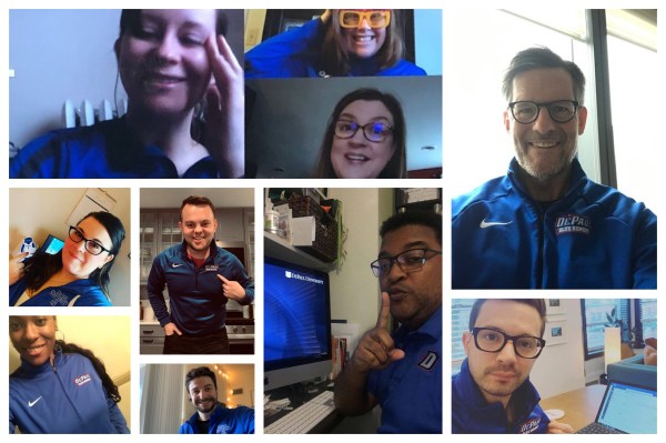 Just because we're working from home doesn't mean we're not keeping the On Thursdays We Wear Blue tradition going! Last week, team members from the Division of Advancement showed off their DePaul gear in their new work-from-home setups!